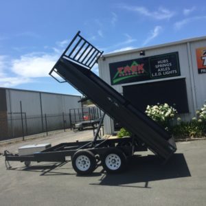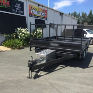 Flat top trailers are also available as a tipper trailer, with a 6 stage hydraulic ram which is battery operated, with the battery and pump in a waterproof toolbox on the a-frame for easy access.